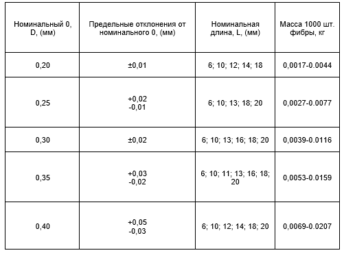 Допускается волнистость фибры с отклонением от прямолинейности 1 мм Масса фибры является справочной величиной