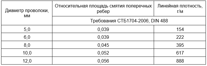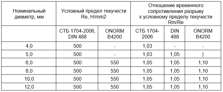 Проволока арматурная периодического (трехстороннего) профиля в соответствии с требованиями СТБ1704-2006, DIN 488, а также аналогичная арматурная проволока в соответствии с требованиями ТУ 14-1-5510-2005, ГОСТ Р 52544-2006 (Россия), PN-ISO 6935-2 (Польша), NS 3576-1, NS EN 10080 (Норвегия), ONORM В4200/7 (Австрия), общим допуском строительного надзора № Z-1.2-219 Проволока арматурная периодического (трехстороннего) профиля.