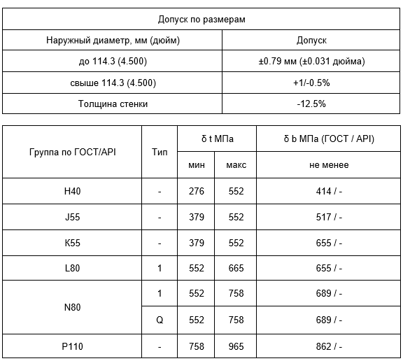 По ГОСТ Р 53366-2009, API SPEC5CT(9р.) - 2011