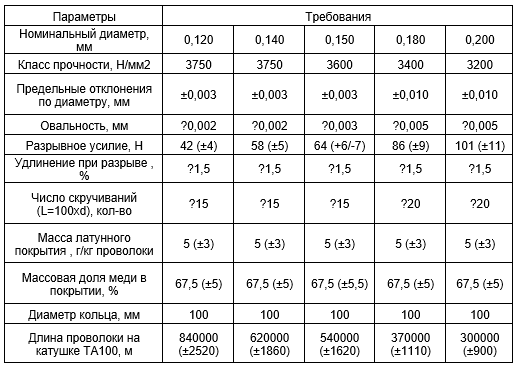 Проволока для резки идентифицируется по номинальному диаметру и классу прочности. Проволока для резки поставляется на катушках TA100 либо на таре заказчика (катушках TA63, TA32). Отклонение длины проволоки на катушке не должно превышать ± 0,3 % от номинальной длины. Длина намота проволоки по согласованию с потребителем может отличаться от указанной в таблице.