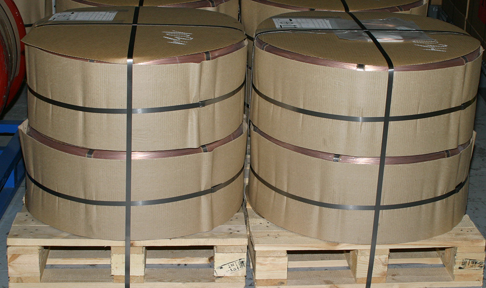 Катушки с бортовой проволокой устанавливаются на транспортные поддоны. Фиксации катушек с продукцией осуществляется металлуческой лентой при транспортировке на деревянном или металлическом поддоне. Поддоны, контейнеры и катушки являются многооборотной возвратной тарой.